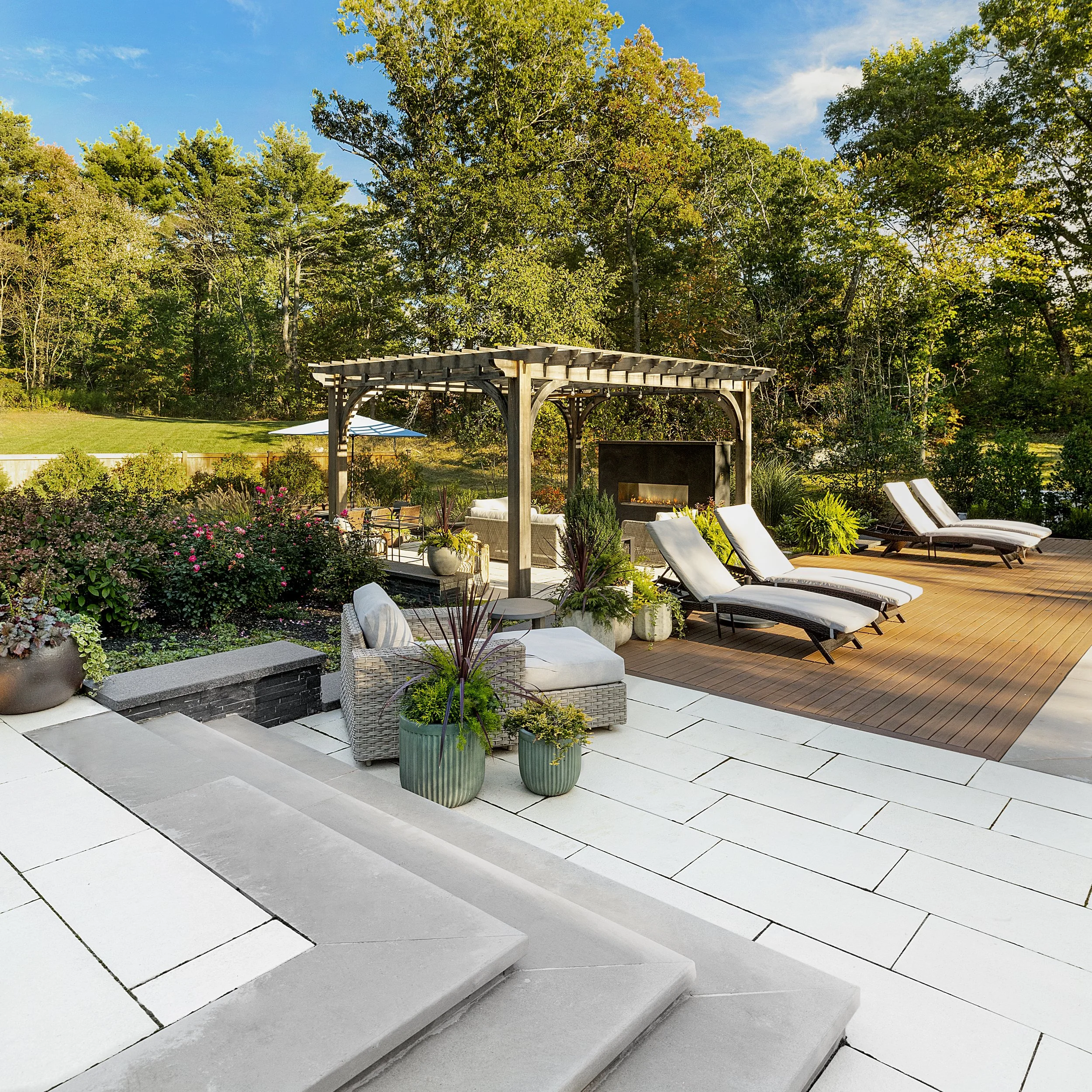 The landscape development program includes a series of stepped outdoor social spaces centered around two major elements; a swimming pool and gas fireplace. The homeowner desired a “resort” feel, with very clean lines and a modern look. The sum of the spaces needed to be large enough to host large gatherings, but individually intimate enough for one person to feel cozy and sheltered.